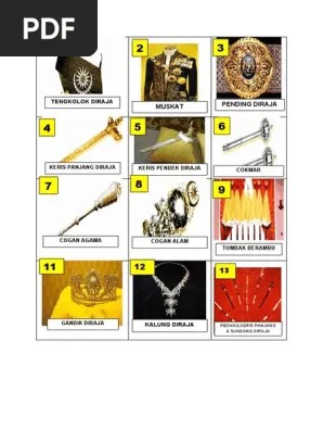 Berdasarkan gambar di atas apakah nama alat kebesaran diraja tersebut pedang keris panjang dan sundang diraja. Pedang, keris panjang dan sundang diraja adalah tiga senjata melayu lama yang dijadikan sebahagian daripada alat kebesaran diraja iaitu diambil daripada .